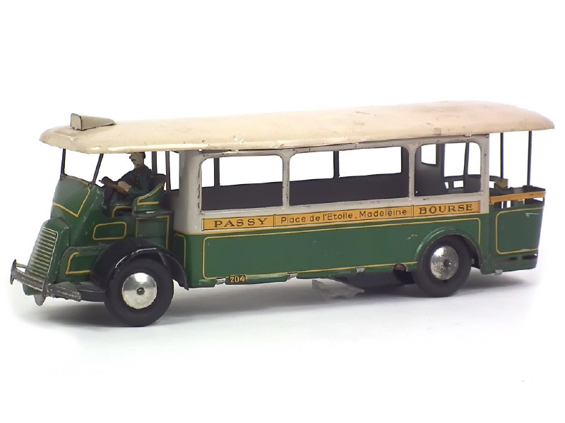 longueur 29,5 cm - dernière version avec jantes à pneus caoutchouc - moteur à clef (fonctionne) - avec direction - toit repeint - parties chromées plus ou moins ternies