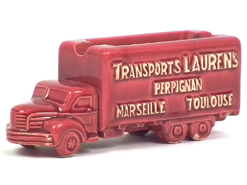 DIVERS Cendrier en forme de BERLIET Fourgon 'TRANSPORTS LAURENS' en céramique rose foncé