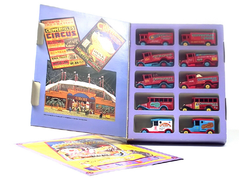 petite échelle - saison 1994/1995 - collection CAMEO COLLECTABLES - contient 10 véhicules dont 5 avec importantes traces de métal fatigue & déformations - on y joint un dépliant CHIPEERFIELD CIRCUS de la collection CORGI CLASSICS