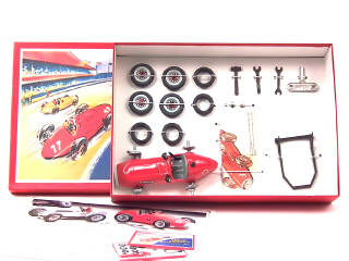 réédition - dimensions du coffret : 34,5 x 24,5 cm - contient : une voiture de course GRAND PRIX RACER 1070 (FERRARI) - moteur à clef (fonctionne) - avec accessoires, notice & clef