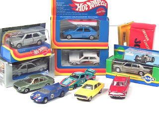 miniatures reproduisant notamment les modèles : BMW (une boîte en état 'c'), FIAT, TALBOT, PORSCHE, SIMCA (en état 'R'), ALPINE RENAULT (kit métal réalisé J.BIALIAS) & FORD - on y retrouve les marques : GAMMA, MATTEL, SOLIDO & SCHUCO - on y joint 2 boîtes des marques MEBETOYS & SOLIDO