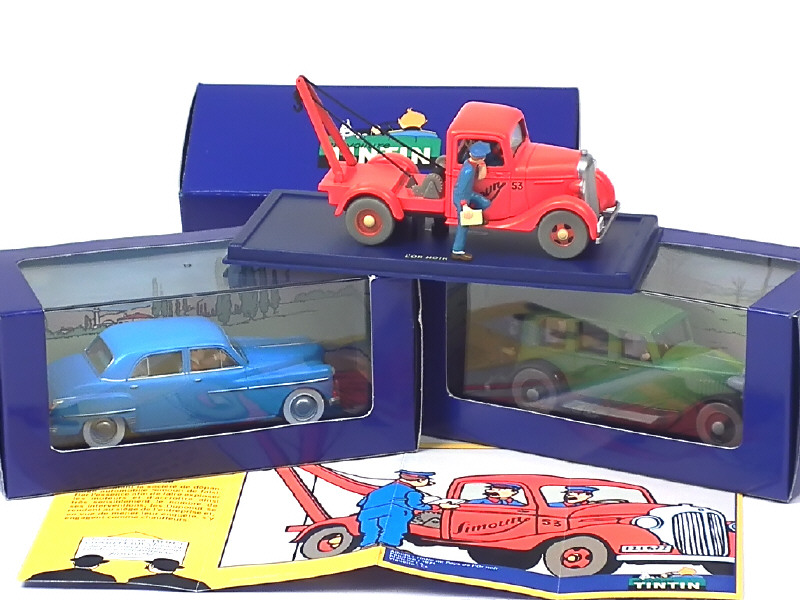 série 'EN VOITURE TINTIN' - comprend : la limousine du Lotus bleu, la dépanneuse Simoun de tintin au Pauys de l'or noir & la DODGE d'Objectif lune - avec certificats