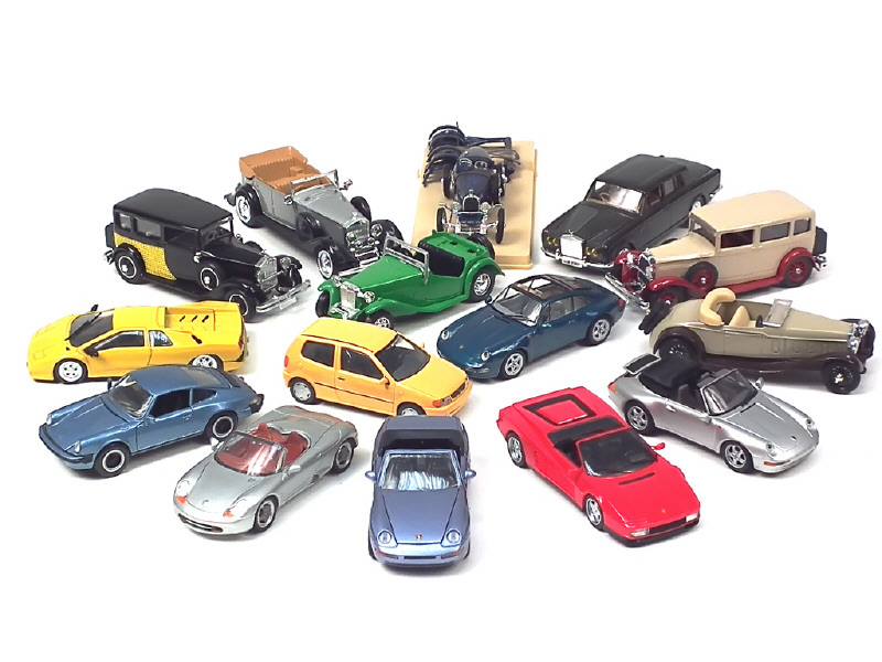 miniatures reproduisant notamment les modèles : ROLLS ROYCE, TALBOT, CITROEN, MERCEDES & PORSCHE - on y retrouve notamment les marques : ELIGOR, MINICHAMPS, HERPA, NZG & GUISVAL - un modèle avec boîte - quelques éléments cassés à recoller - possibilités de petits manques
