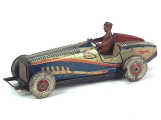 C.R. (FRANCE) 90 DELAHAYE de course en tôle lithographiée crème, bleu pétrole & rouge