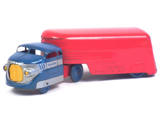 WYANDOTTE TOYS (USA) Camion semi-remorque 'HIGHWAY FRIGHT' en tôle lithographiée bleu, rouge & jaune