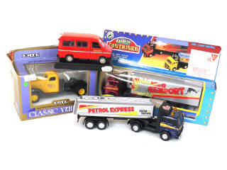 miniatures reproduisant les modèles : IVECO minibus 'FERRARI', INTERNATIONAL KB12 1947 & MERCEDES - on y retrouve les marques : OLD CARS, ERTL & REDSON (une boîte état 'c')