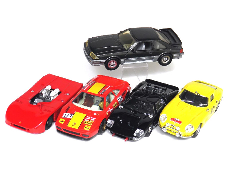 miniatures reproduisant les modèles : FERRARI, PORSCHE & FORD - on y retrouve les marques : BEST, BBURAGO, BANG & ERTL