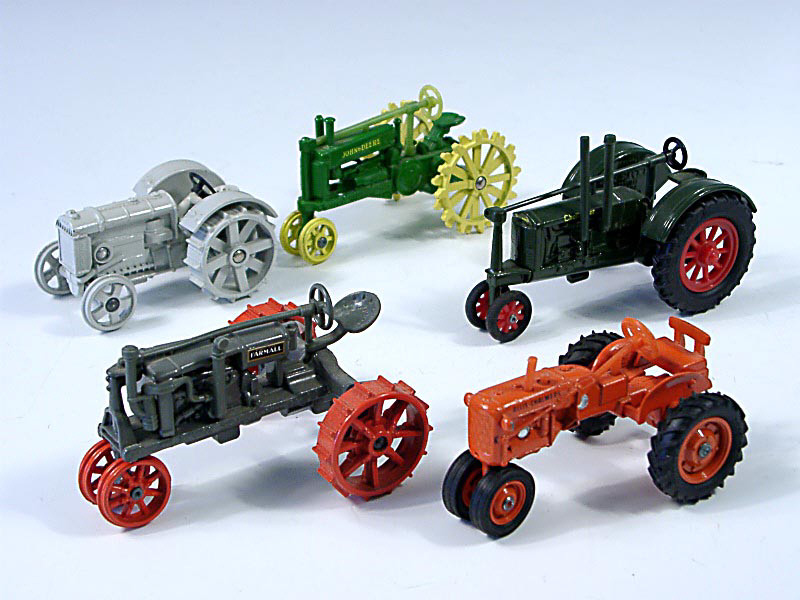 miniatures reproduisant des tracteurs de marques : JOHN DEERE, ALLIS-CHALMERS, MASSEY HARRIS, FARMALL & FORDSON