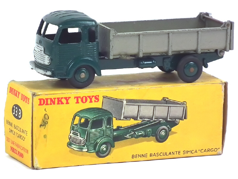 DINKY TOYS (FRANCE) 33B SIMCA CARGO Benne basculante vert foncé, benne gris métal doré (intérieur lisse)