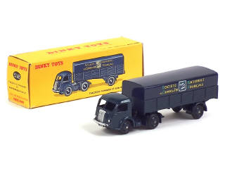 DINKY TOYS (FRANCE) 32AB PANHARD Semi-remorque 'S.N.C.F' (version avec intérieur de toit quadrillé) bleu foncé (fond de l'écusson quadrillé)