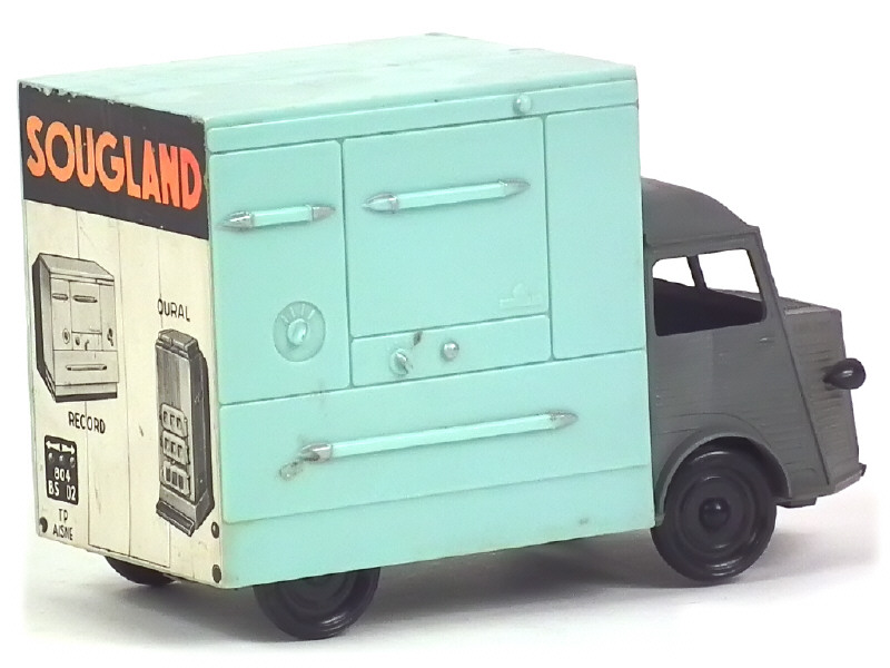 avec fourgon en forme de gazinière représentant le modèle 'RECORD' de la gamme - axes de roues oxydés - manque pare-chocs avant - 2 extrémités de plancher cassées dont une incomplète & l'autre recollée - quelques rayures sur le toit de fourgon PROMOTIONNEL !