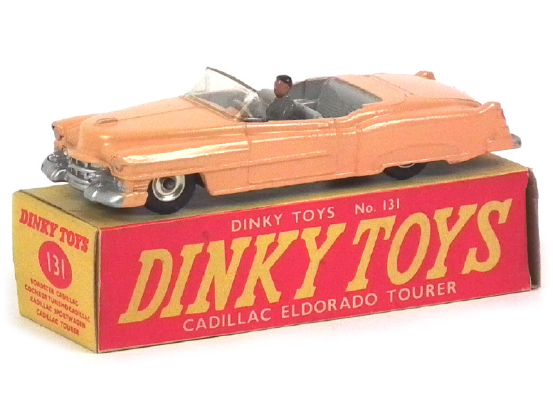 DINKY TOYS (GB) 131 CADILLAC Tourer décapotable saumon, intérieur gris & jantes aluminium