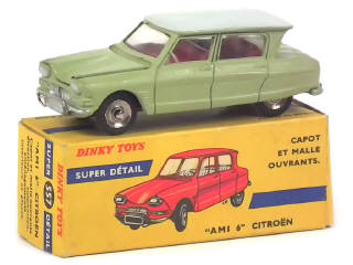 DINKY TOYS (FRANCE) 557 CITROËN AMI 6 (version avec roue de secours sous le capot) vert tilleul, toit blanc cassé