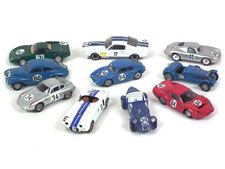 kits montés - miniatures reproduisant notamment les modèles : ROVER, BRM, FERRARI, BG RENAULT, ABARTH, CROSSLEY, PORSCHE, FORD & PEUGEOT - on y retrouve notamment les marques : GRAPHYLAND, AMR, MIKANSUE, GRAND PRIX MODELS, STARTER, AUTOMANY & PROVENCE MOULAGE - possibilité de petits manques