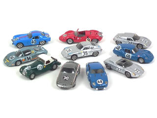 kits montés - miniatures reproduisant notamment les modèles : PORSCHE, PANHARD, MASERATI, SIMCA & DB - on y retrouve notamment les marques : STARTER, CCCF, MANOU, EXEM, JPS & PROCENCE MOULAGE - possibilité de petits manques