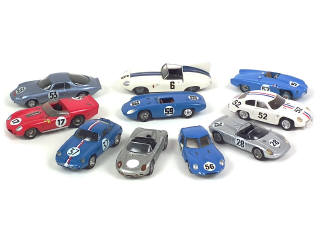 kits montés - miniatures reproduisant notamment les modèles : HAMORE, DB, PORSCHE, PANHARD & JAGUAR - on y retrouve notamment les marques : MANOU, STARTER, PROVENCE MOULAGE, EQUIPE & TRONKITS - possibilité de petits manques