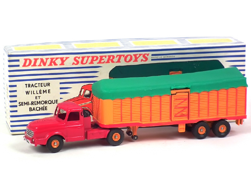 DINKY TOYS (FRANCE) 896 WILLEME Semi-remorque bâché (version avec jantes concaves) rouge & orange, bâche verte