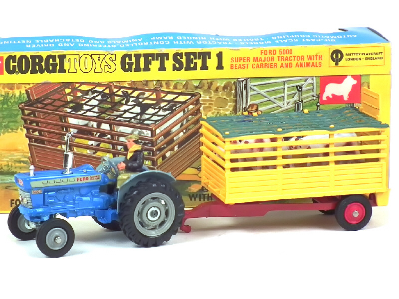 CORGI TOYS (GB) GS1 FORD 5000 Tracteur agricole avec remorque bétaillère bleu, jaune & rouge