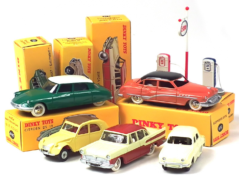 copie des modèles DINKY-TOYS FRANCE - comprend : CITROEN 2CV, DS 19, RENAULT DAUPHINE, BUICK ROADMASTER & SIMCA CHAMBORD - manque certificats