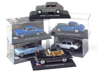 comprend les modèles : ARONDE GRAND LARGE, 1000 coupé, 1000 RALLYE 3, 1100 & PRESIDENTIELLE - 4 exemplaires IXO de la collection 'LES BELLES ANNES SIMCA' - on y joint une TALBOT LAGO 4.5 l