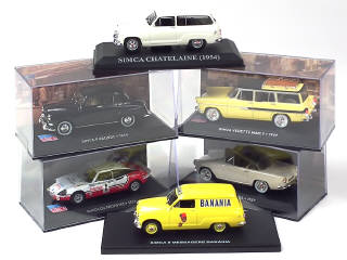comprend les modèles : 9 ARONDE, PLEIN CIEL, VEDETTE MARLY, CG proto, 9 MESSAGERE 'BANANIA' & CHATELAINE - 4 exemplaires IXO de la collection 'LES BELLES ANNES SIMCA' & un modèle EDITION ATLAS