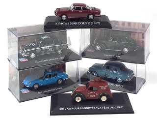 comprend les modèles : 5 fourgonnette 'LA TETE DE CERF', 1200 S coupé, ARONDE (2 exemplaires différents), 1300 coupé & 8 - 3 exemplaires IXO de la collection 'LES BELLES ANNES SIMCA'