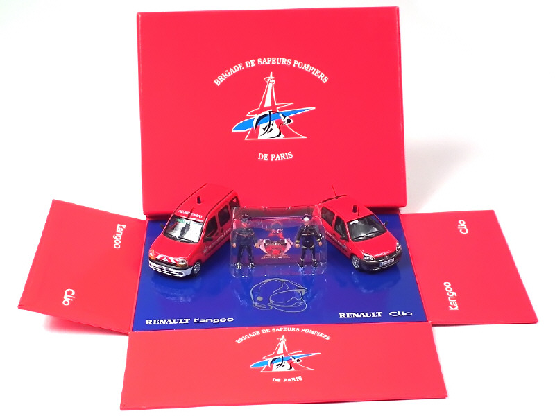 contient : RENAULT KANGOO 'RECRUTEMENT', CLIO & 2 figurines - sur socle de présentation & bulletin de demande d'informations