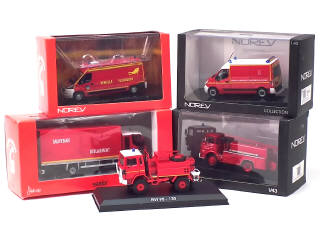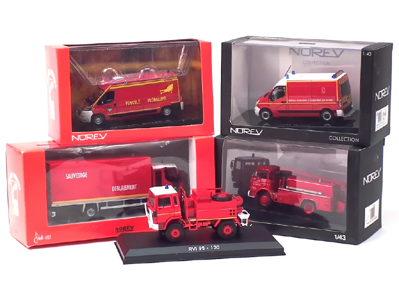 NOREV (FRANCE) Ensemble de 5 véhicules de pompiers rouge, blanc & jaune