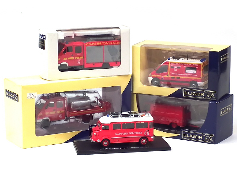 ELIGOR (FRANCE) Ensemble de 5 véhicules de pompiers rouge & blanc