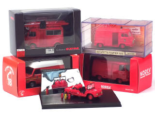 NOREV (FRANCE) Ensemble de 4 véhicules de pompiers rouge & blanc