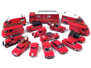 miniatures reproduisant les modèles : CITROEN (don t un exemplaire avec plancher déformé & traces de métal fatigue), RENAULT, PEUGEOT, PANHARD & MERCEDES - on y retrouve notamment les marques : NOREV & ELIGOR - quelques manques