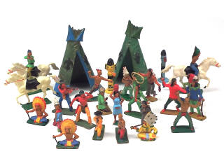 STARLUX (FRANCE) Ensemble de 25 figurines, 3 cavaliers sur leur monture, 2 éléments de décor & 2 tentes