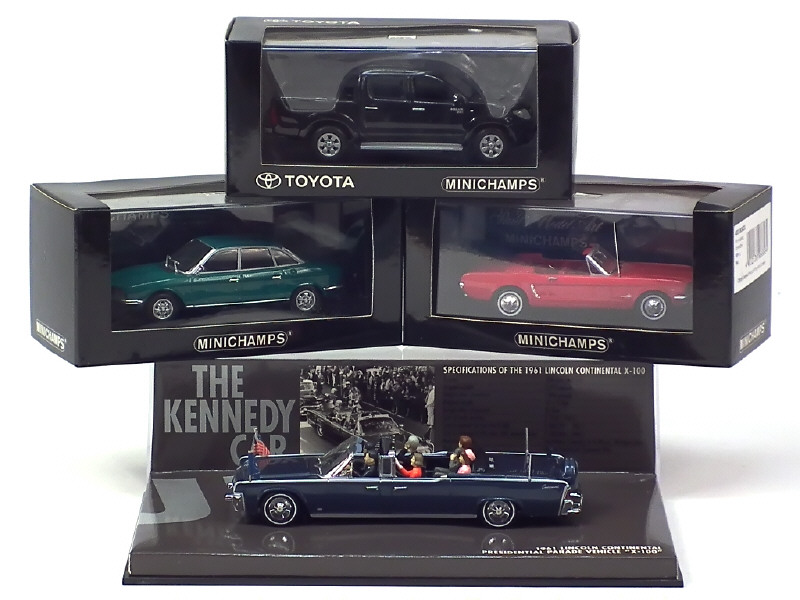 comprend : FORD MUSTANG convertible, NSU RO 80 (séries limitées), TOYOTA HILUX & LINCOLN CONTINENTAL 'JF KENNEDY'