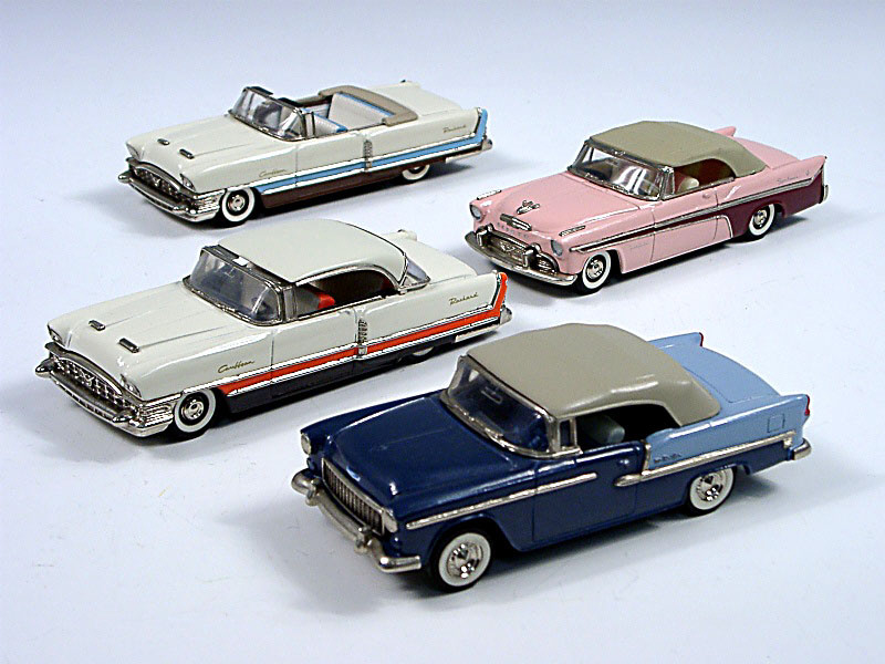 miniatures reproduisant les marques : DESOTO, CHEVROLET & PACKARD - manque sigle de capot sur l'un des modèles