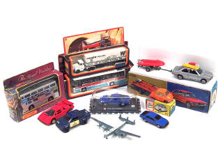 différentes échelles - états de 'A' à 'E' - miniatures reproduisant notamment les modèles : ALPINE, FIAT, LAMBORGHINI, RENAULT, HEINKEL, SCANIA, LOOKEED, ROUTEMASTER & BMW - on y retrouve notamment les marques : MERCURY, CORGI, MATCHBOX, LUSO TOYS, SOLIDO, GALGO, SAKURA & BUBY - 2 exemplaires sans boîte - avec manques - boîtes en états de 'b' à 'c'