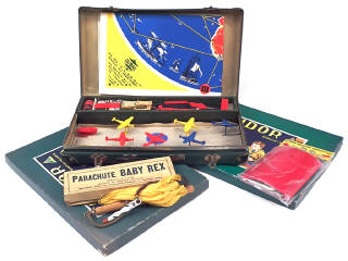 DIVERS (FRANCE) Ensemble d'un jeu de société, un garage en tôle & un parachutiste