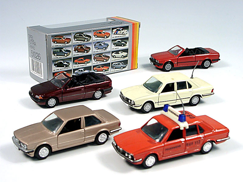 miniatures reproduisant les marques : OPEL & BMW - un modèle avec boîte & un autre avec panonceau 'TAXI' manquant