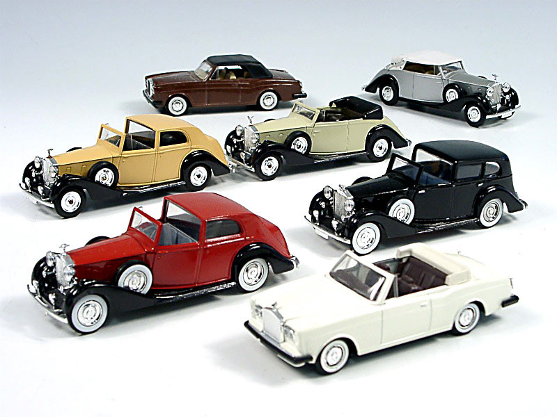 miniatures reproduisant les marques : ROLLS-ROYCE & BENTLEY - 2 mascottes de radiateur tordues - un modèle avec un phare antibrouillard manquant - un modèle avec boîte & un autre de marque 'ELYSEE' sur base SOLIDO