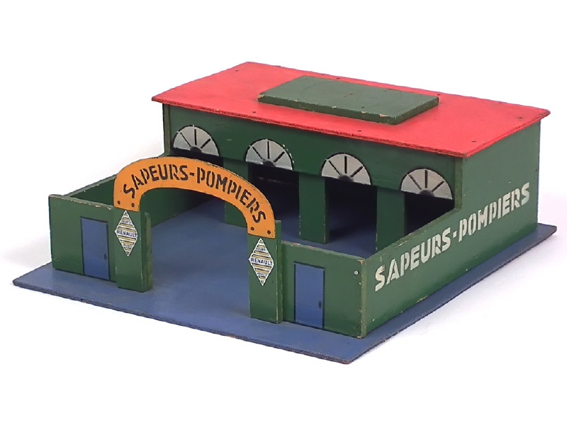 C.I.J. (FRANCE) 14/16 Caserne de sapeurs-pompiers en bois vert, bleu, orange & jaune