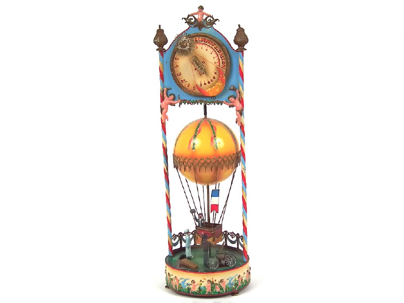 Réalisation fin XIX siècle par J.P Hartmann - hauteur 50 cm - avec boîte à musique (actionnée par le cadran solaire) - en action le ballon & les personnages tournent - légers manques & restaurations avec éléments non d'origine (notamment le mécanisme de socle & la boîte à musique) - SUPERBE !