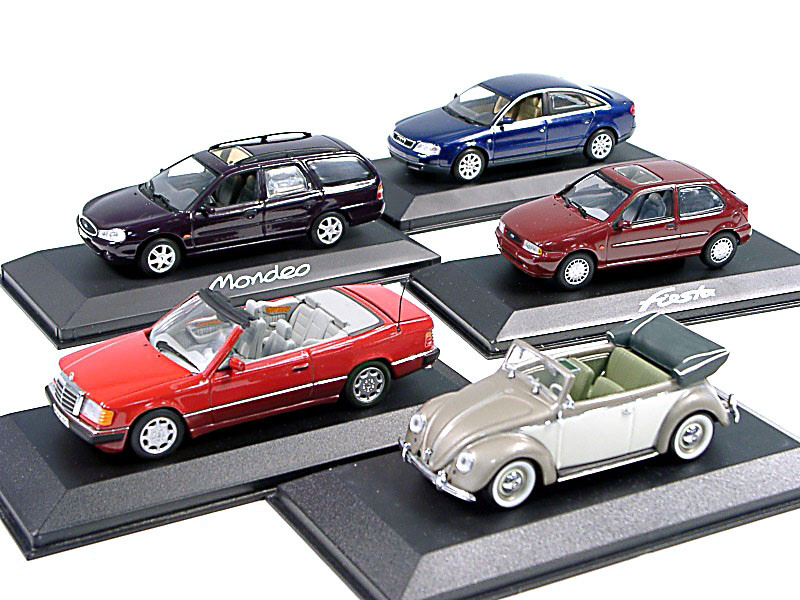 miniatures reproduisant les marques : MERCEDES, FORD, VOLKSWAGEN & AUDI - avec 4 suremballages en carton