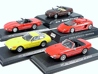 miniatures reproduisant les marques : FERRARI, CHEVROLET & NISSAN - avec 2 suremballages en carton - on y retrouve les marques REVEL & DETAILCARS