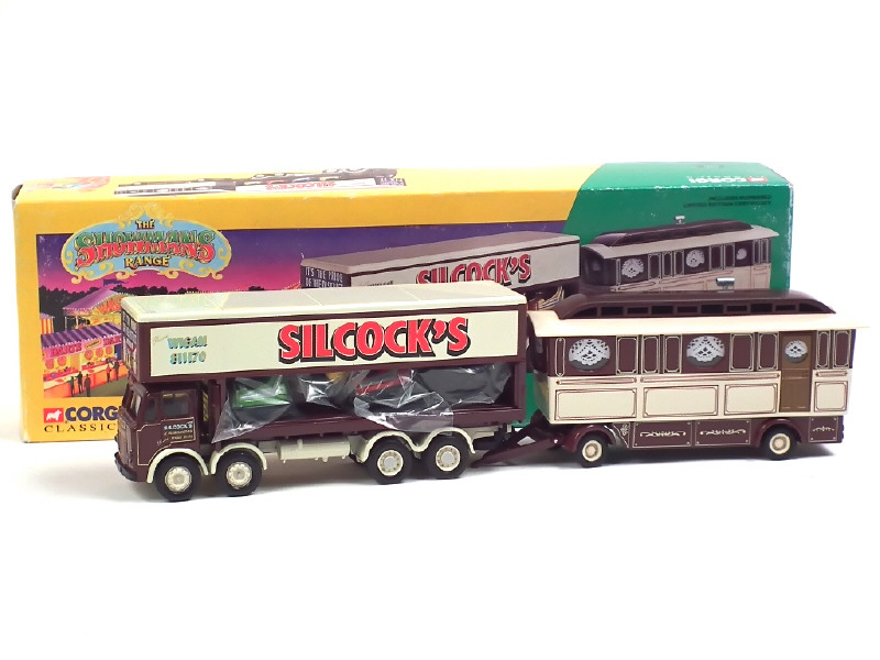 CORGI TOYS (GB) 24801 LEYLAND DODGEM Camion-fourgon à 8 roues avec caravane 'SILCOCK'S' chocolat & blanc cassé