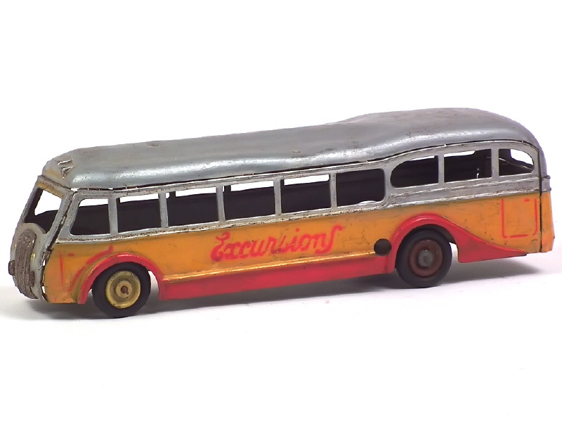 version avec calandre pleine - avec moteur à clef (à revoir) & direction - inscriptions '9645-UB', 'LES CARS RENAULT' & 'EXCURSIONS' au pochoir - quelques parties repeintes - 2 roues changées - roues arrières & moteur oxydés - 2 petits enfoncements sur le toit