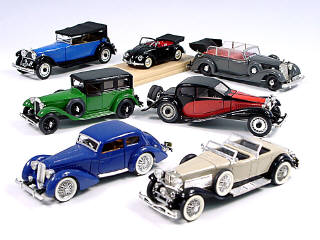miniatures reproduisant les marques : LANCIA, BUGATTI, MERCEDES, DELAHAYE, DUESENBERG & VOLKSWAGEN - un modèle avec boîte