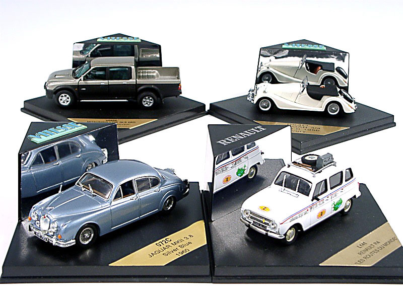 miniatures reproduisant les marques : RENAULT, MITSHUBISHI, JAGUAR & MORGAN - une antenne cassée sur un modèle