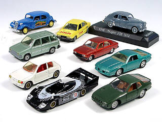miniatures reproduisant les marques : CITROËN, PEUGEOT, PORSCHE, CHEVROLET, NISSAN & TALBOT - 2 modèles avec boîte