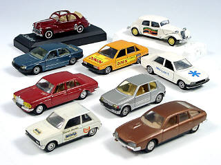 miniatures reproduisant les marques : PEUGEOT, CITROËN, MERCEDES, RENAULT & TALBOT - 2 modèles avec boîte