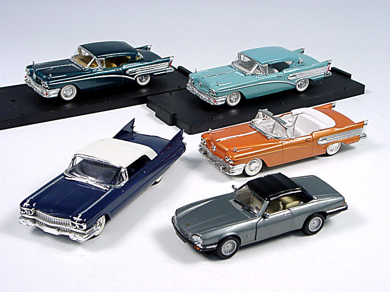 miniatures reproduisant les marques : CADILLAC, BUICK & JAGUAR - la JAGUAR est de marque 'DETAILCARS' - 2 modèles avec boîte & petits dépliants de la gamme 'VITESSE' de 1993