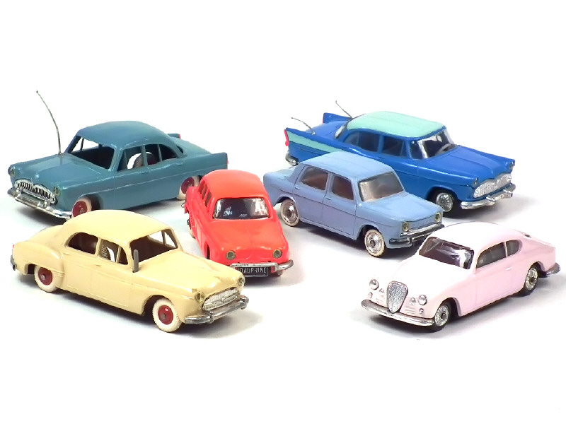 comprend : LANCIA AURELIA (carrosserie décolorée), RENAULT DAUPHINE (vitrage fendu), AMIRAL (manque antenne), SIMCA 1000, BEAULIEU & TRIANON - petites déformations des carrosseries avec jantes légèrement fondues